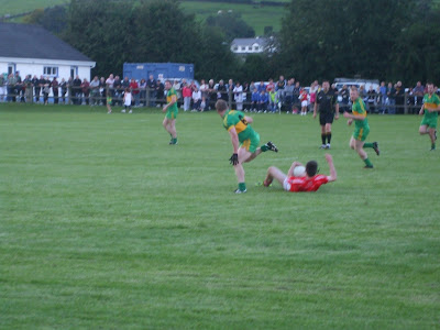 Edenderry 0-3 1-6 Rhode In the second half Edenderry were the superior team for twenty odd minutes but Rhode demonstrated why they are champions by adding four points in the final four minutes to pull away. Derek Kelly made a great solo run through on goals and when his jersey was pulled the free was awarded when advantage should have been allowed. Ciaran Hurley pointed from the resulting kick and three minutes later Richie Dalton pointed after once again Derek Kelly saw an effort foot blocked in the square.